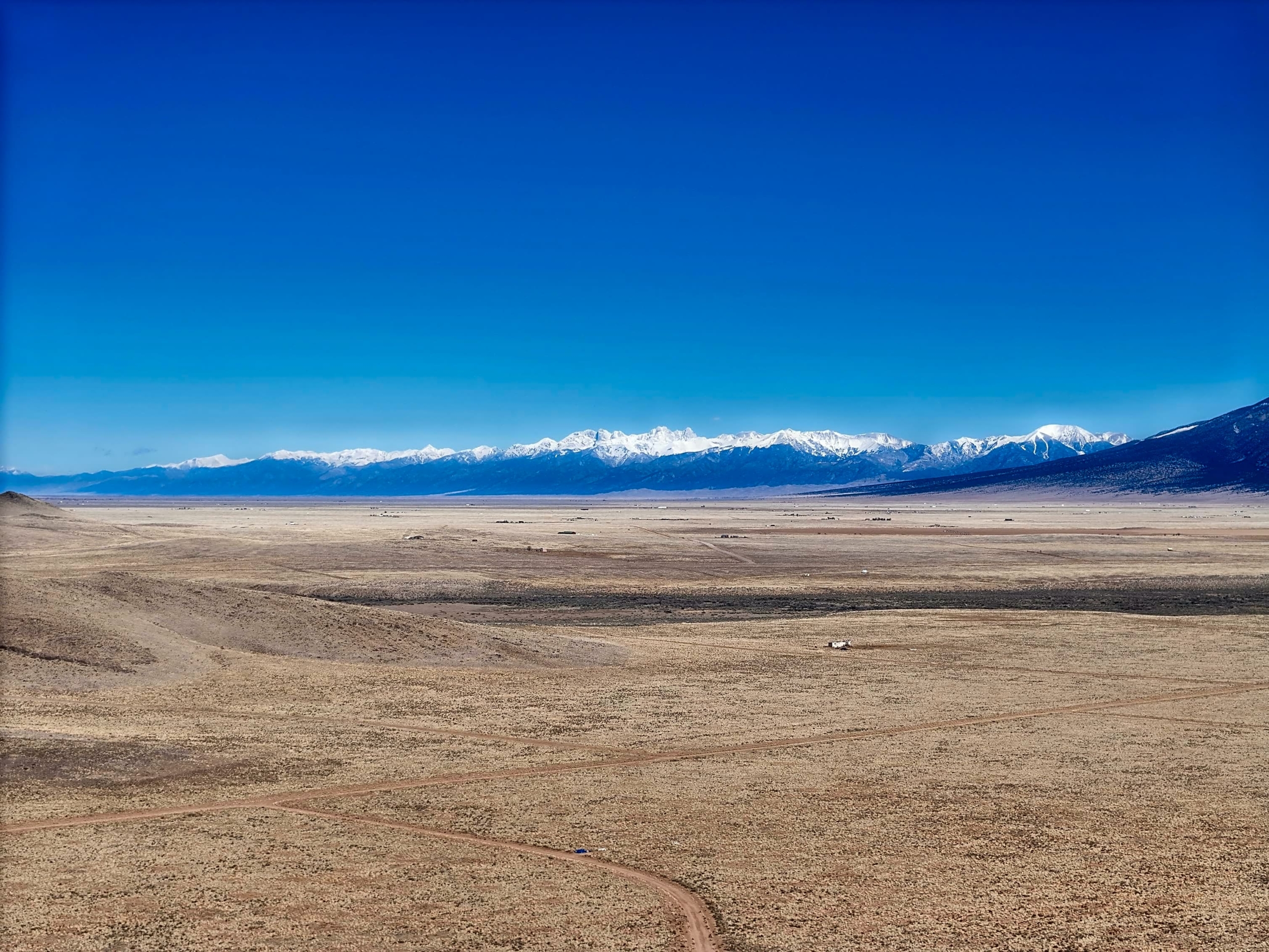 At 7,500–8,000 feet in elevation, the air is clean and crisp, the nights are cool, and the skies are clear. Summers rarely climb out of the 80s, evenings drop into the 40s, and winters bring highs in the 30s with cold nights. With over 300 days of sunshine, the San Luis Valley is one of the best regions in the country for solar energy, gardening, and outdoor living.