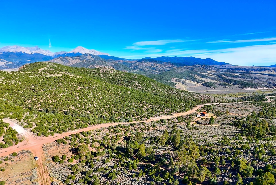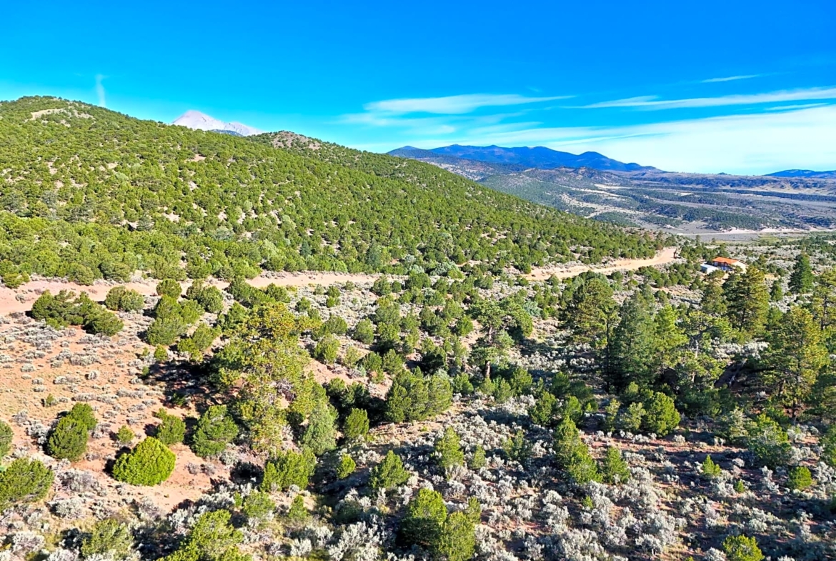 This land is located in the Sangre de Cristo Ranches, a popular area known for its open spaces and mountain views. It has light trees and shrubs and a moderate slope, offering varied terrain for your off-grid vacation home. You’ll have expansive public land directly across the street, ensuring no immediate neighbors and maximizing your privacy.